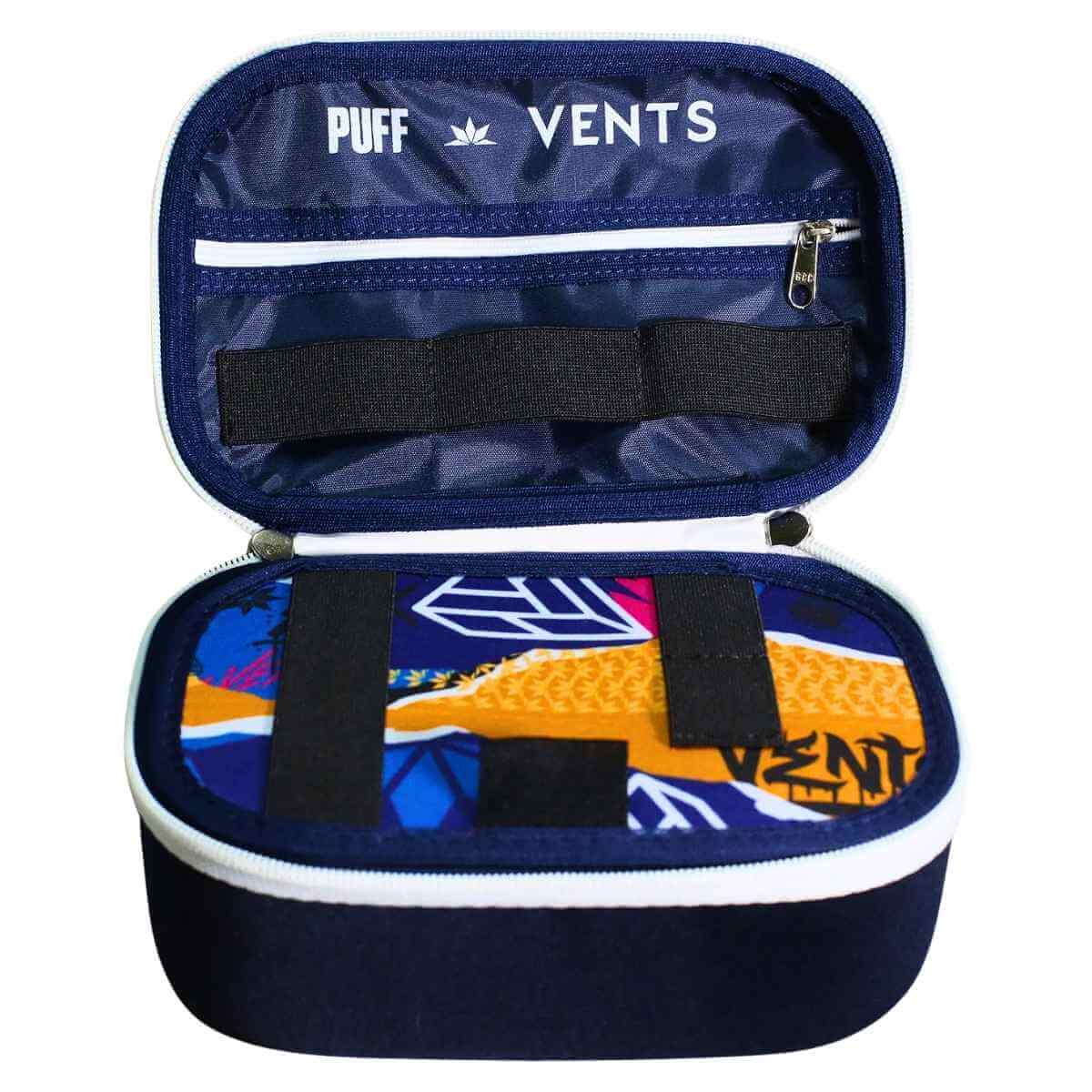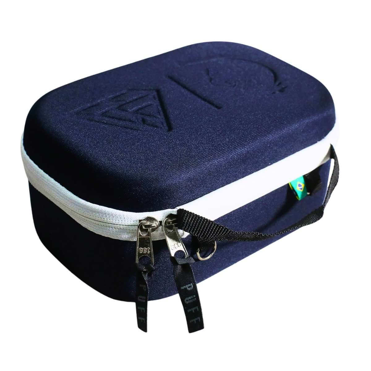 O Puff Life Case Pro Puff Collab Vents é um estojo rígido em EVA desenvolvido em parceria com a VENTS e Thiago Ventura, pensado para organizar e proteger itens pessoais em um único compartimento compacto. Com dimensões aproximadas de 18,5 x 12 x 9 cm e design em azul marinho com detalhes em alto-relevo, combina estrutura robusta com acabamento moderno e discreto.