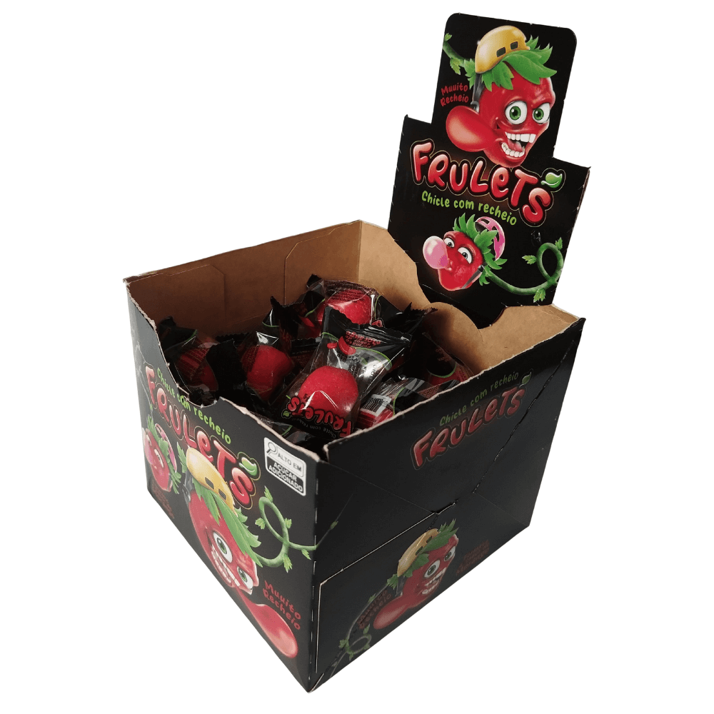O que vem no display de Chiclete Sukest Frulet’s sabor morango?