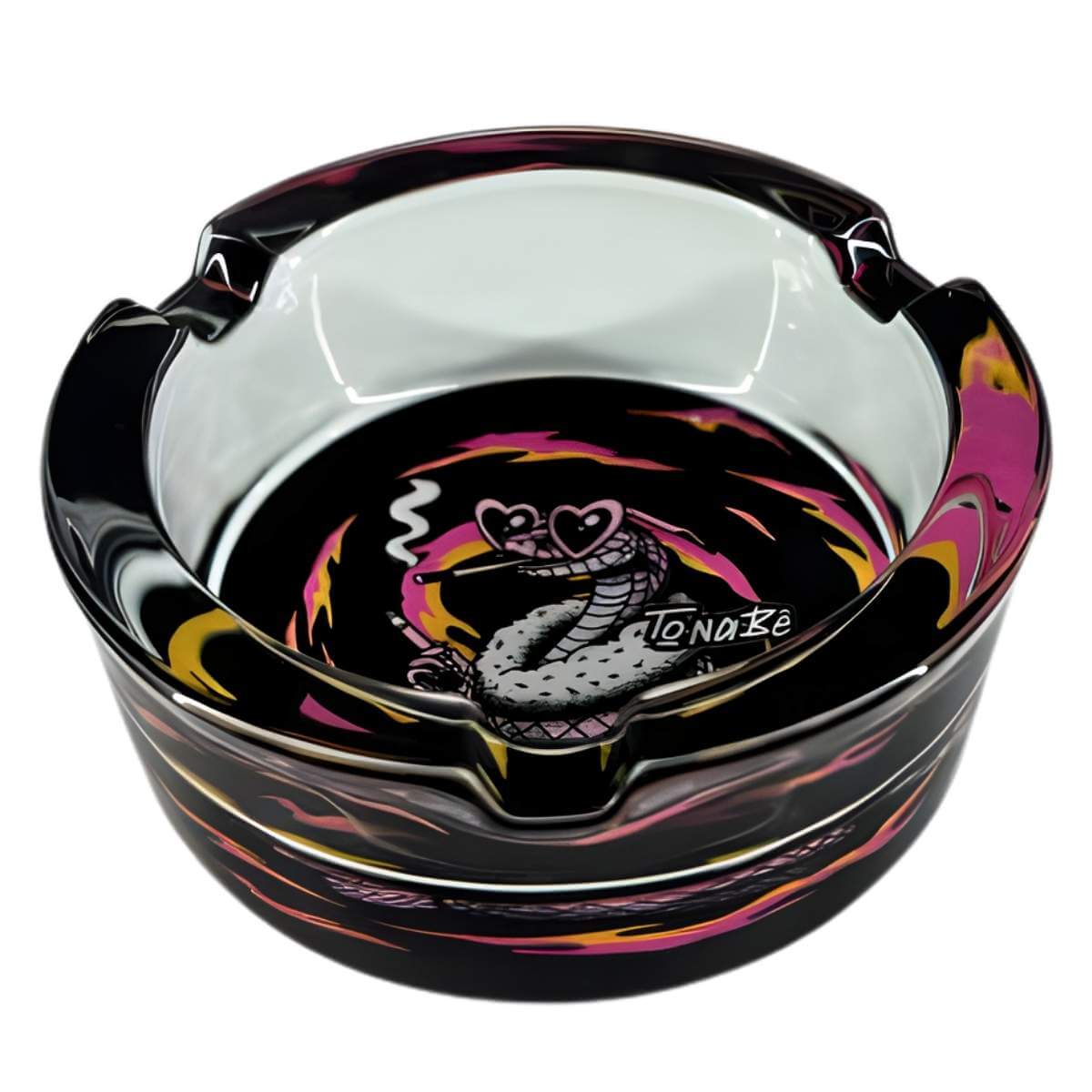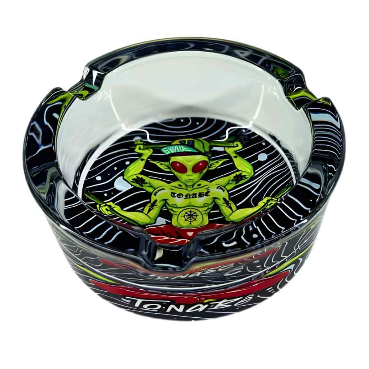 O cinzeiro de vidro Tonabê é um acessório individual desenvolvido para o descarte organizado de cinzas e resíduos, contribuindo para manter mesas e superfícies limpas. Com design redondo e estampado, combina praticidade com um visual marcante para ambientes residenciais ou comerciais.