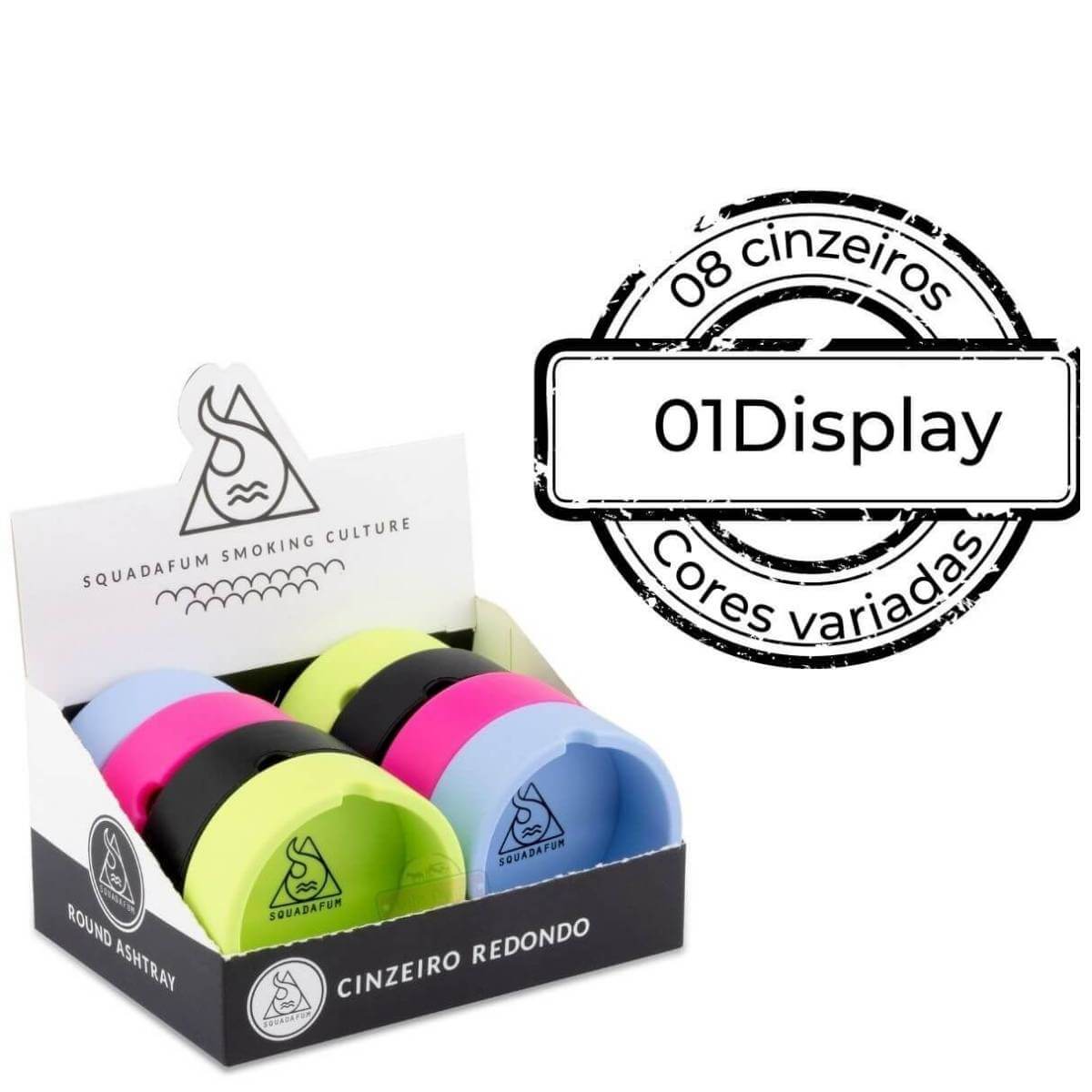 1 (um) display contendo 8 (oito) cinzeiros de silicone redondos Squadafum 7cm, acondicionados em embalagem própria para exposição.