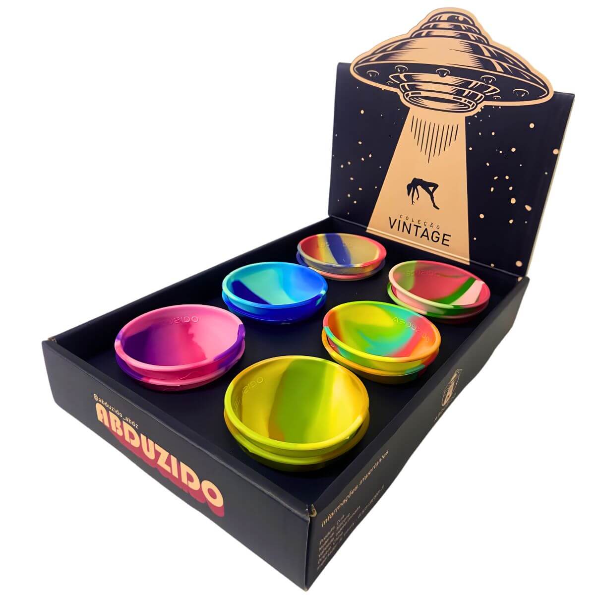 A Cuia de Silicone Abduzido Half Vintage é um acessório compacto produzido em silicone flexível, desenvolvido para o preparo e organização de pequenas porções de conteúdo. Nesta versão, vem em display com 12 unidades, permitindo padronização visual e reposição prática em pontos de exposição.