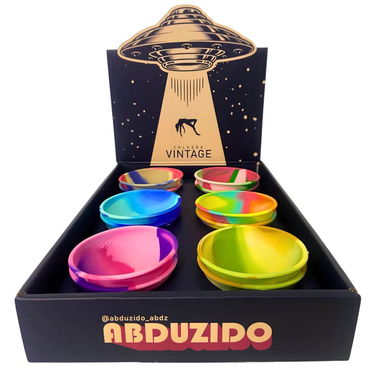 1 (um) display com 12 (doze) cuias de silicone Abduzido Half Vintage, acondicionadas em embalagem própria para exposição.