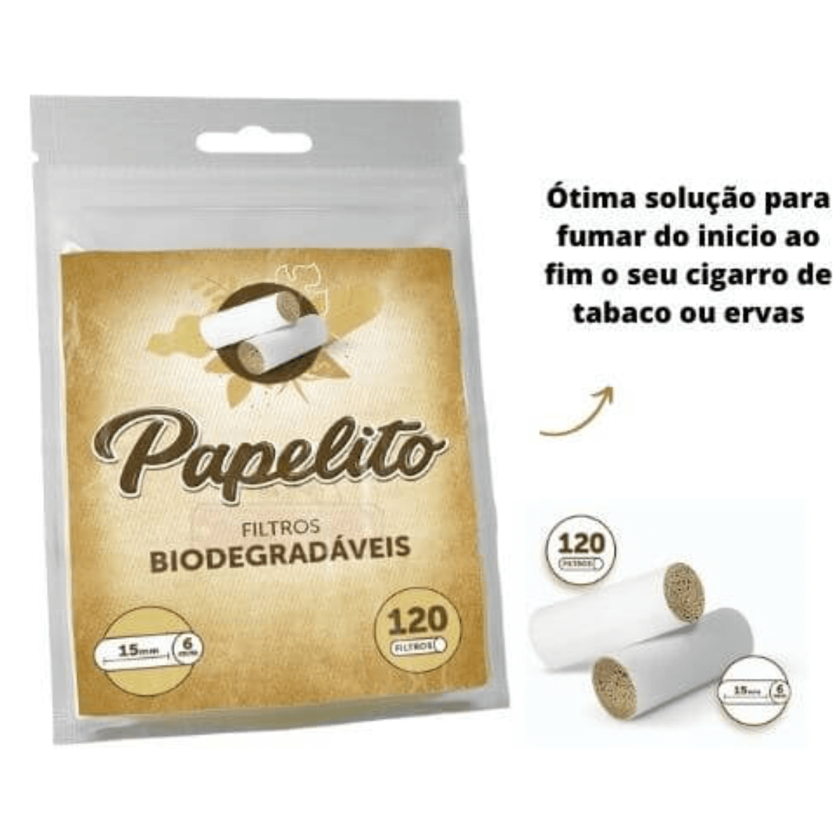 - Tipo de produto: Filtro cilíndrico slim biodegradável 6 mm