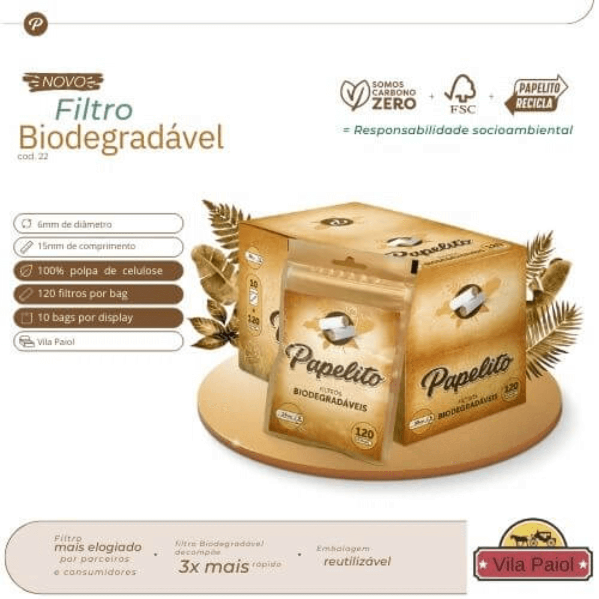 A Vila Paiol atua como atacadista e distribuidor do Filtro Papelito Biodegradável, integrando a linha oficial da marca Papelito ao seu portfólio. Isso favorece operações que buscam revenda de filtros Papelito com apoio de um distribuidor especializado, reposição contínua e padronização de origem.