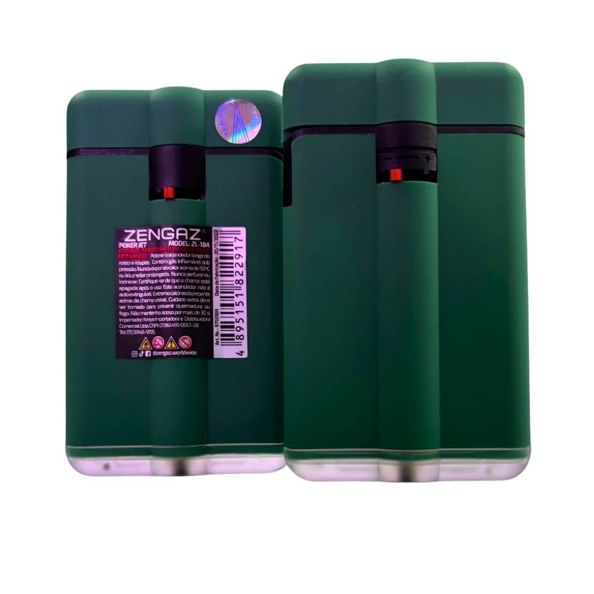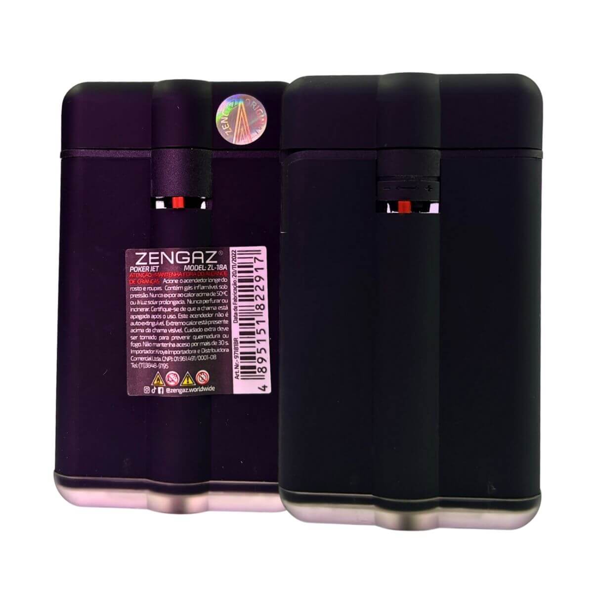 Isqueiro maçarico Zengaz ZL-18A Poker Jet, chama tipo jet, corpo compacto em cores variadas e acendimento prático para uso cotidiano.