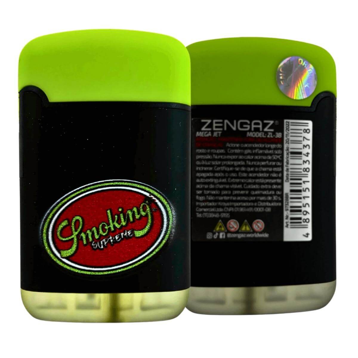 1 (um) isqueiro maçarico Zengaz ZL-3S Smoking Mega Jet, acondicionado em embalagem individual com cores sortidas.
