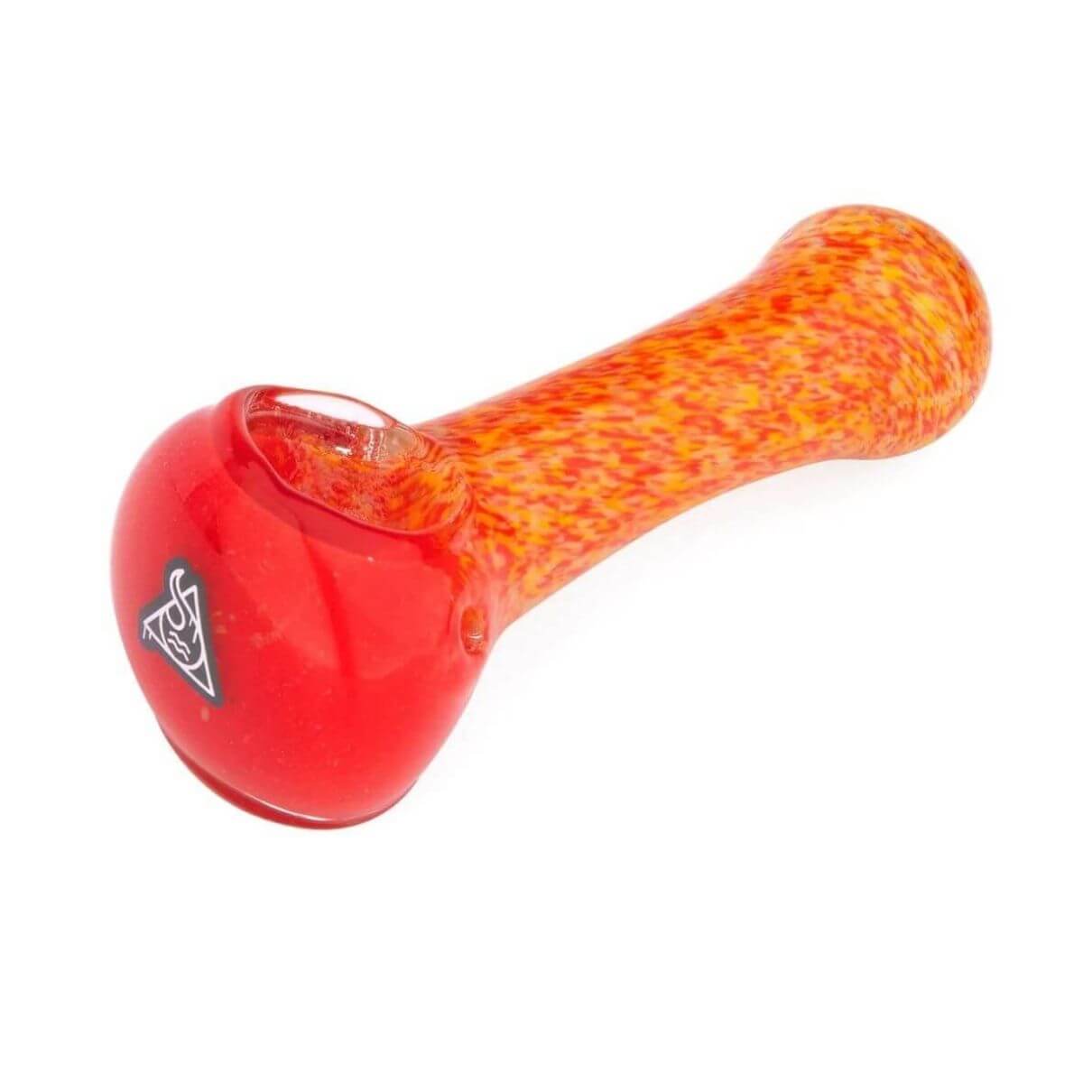 Pipe de vidro Squadafum Art Color vermelho, em borossilicato resistente ao calor, com cerca de 12 cm, formato anatômico tipo spoon e acabamento artístico interno colorido.