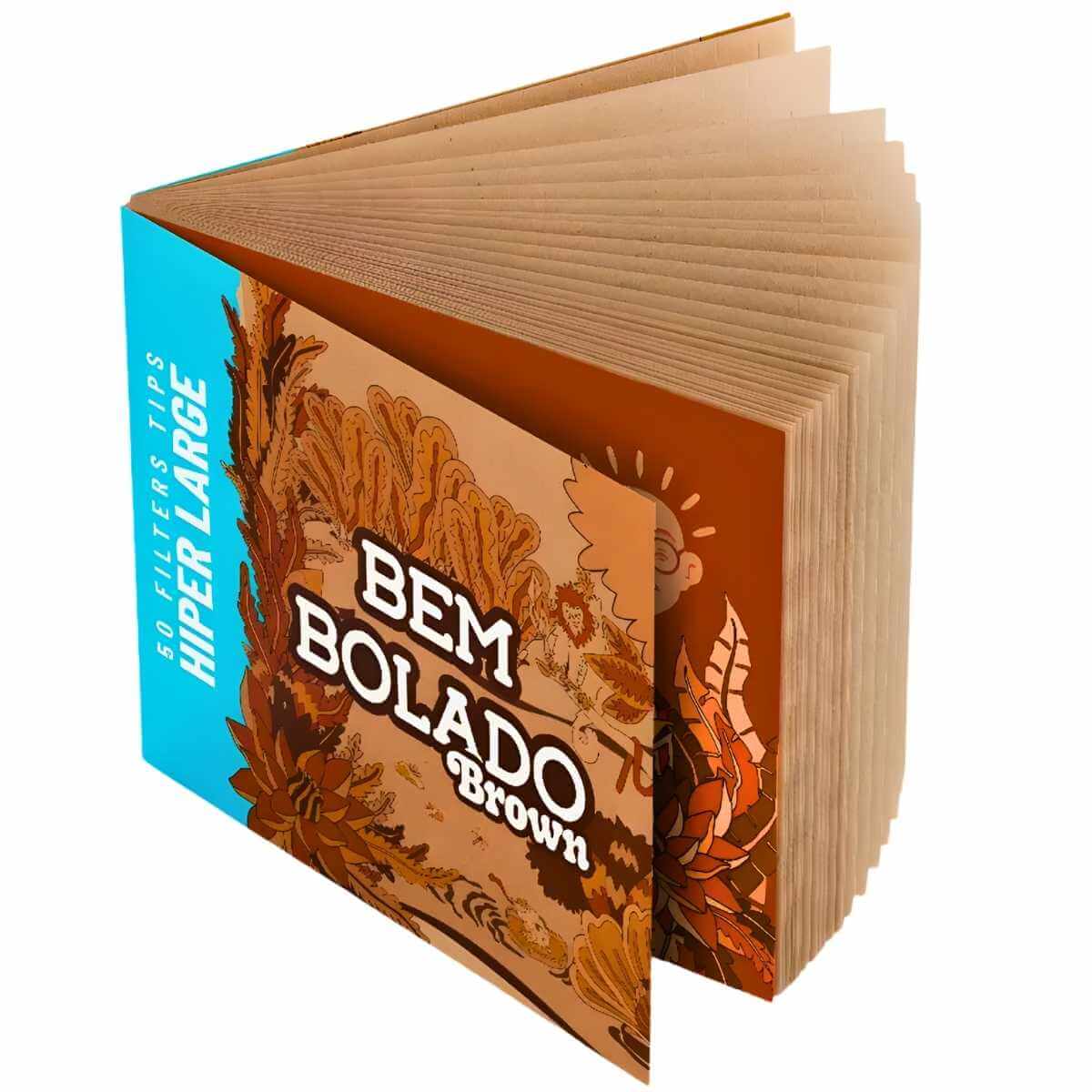 A Piteira Bem Bolado Brown Hiper Large é um acessório de papel desenvolvido pela marca Bem Bolado para quem busca piteiras de maior tamanho, em formato 6 x 5 cm. Este display reúne 24 livretos, cada um contendo 50 piteiras de papel, totalizando 1.200 unidades em uma única embalagem. A linha Brown utiliza papel biodegradável, de coloração natural e livre de cloro, preservando o aspecto marrom característico do material.