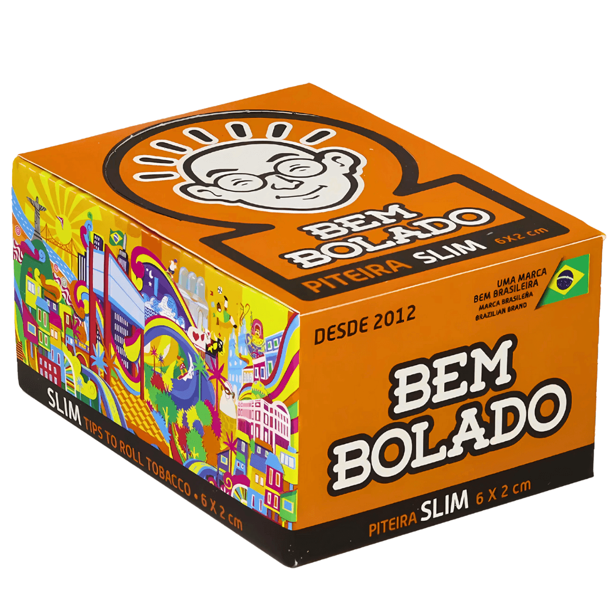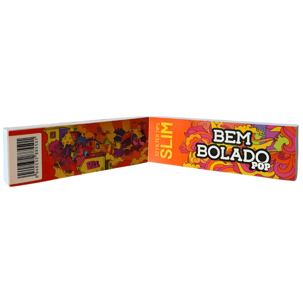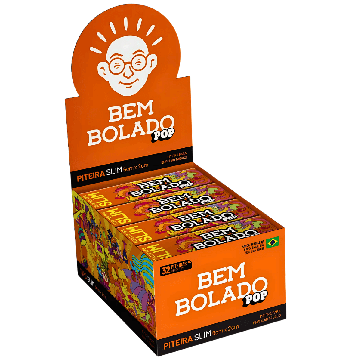A Piteira Bem Bolado Pop Slim é um conjunto de piteiras de papel em formato slim, organizado em display com 24 livretos. Cada livreto traz 32 piteiras destacáveis, com dimensões de 6 cm x 2 cm, pensadas para encaixe proporcional em montagens no padrão slim.