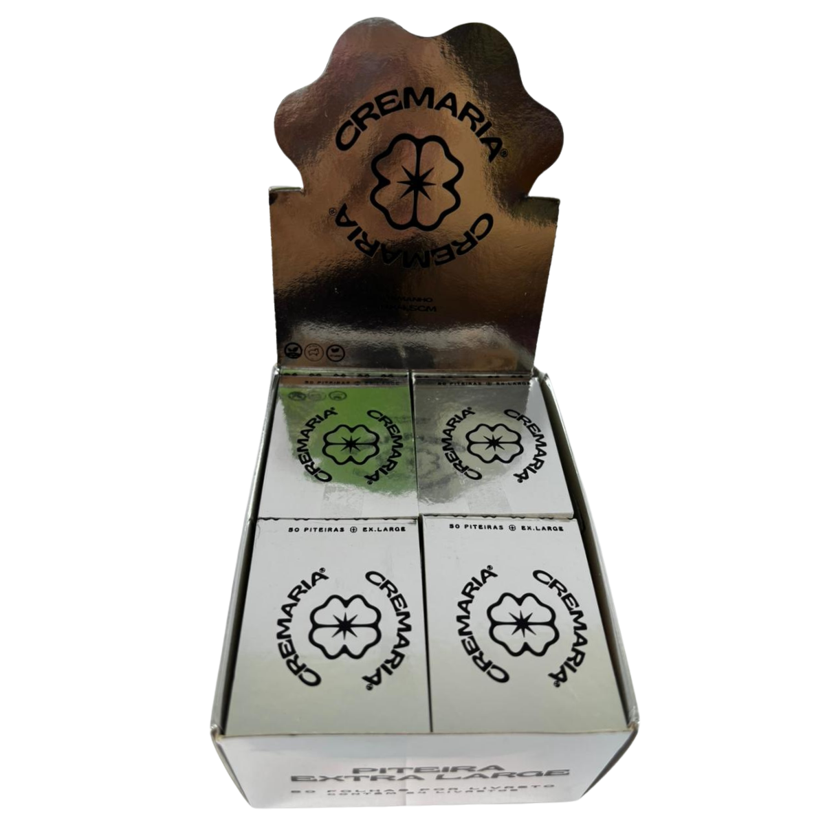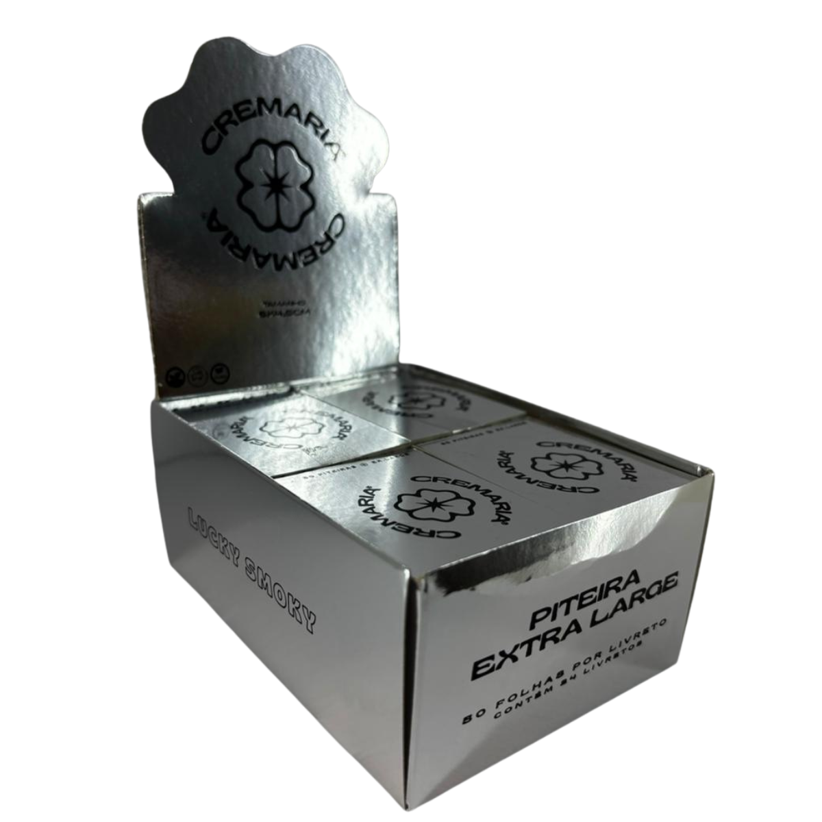 A Piteira Cremaria Extra Large Prata é uma piteira de papel em formato livreto, desenvolvida para quem busca mais firmeza na ponta e melhor acabamento durante a montagem de cigarros enrolados. O display facilita a organização e a exposição do produto, mantendo as unidades protegidas e prontas para uso.