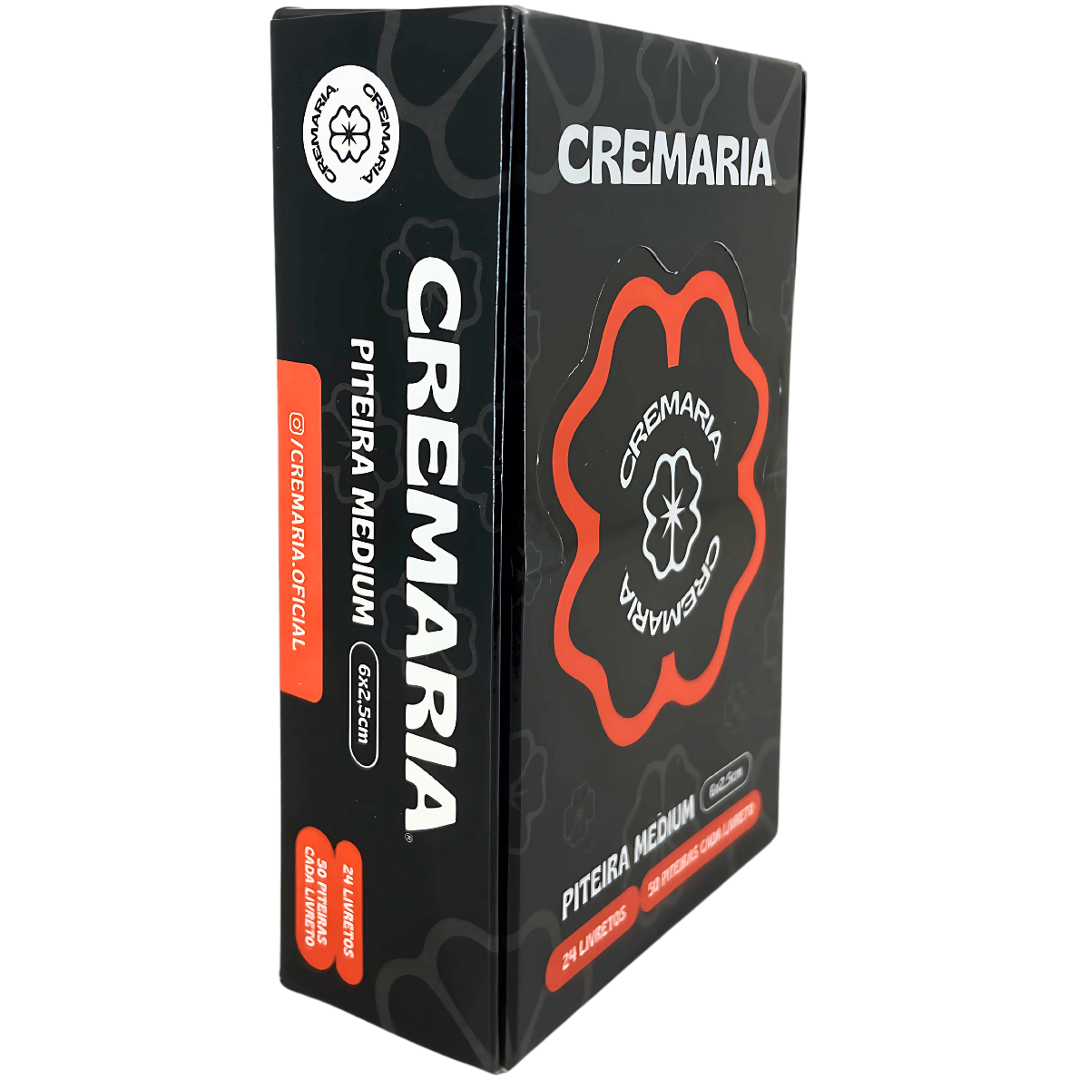 A Piteira Cremaria Medium Preta é uma piteira de papel em formato livreto, desenvolvida para padronizar o acabamento e facilitar o manuseio durante a montagem. A versão Medium oferece equilíbrio entre firmeza e passagem de ar, com dimensões compatíveis com o uso diário.