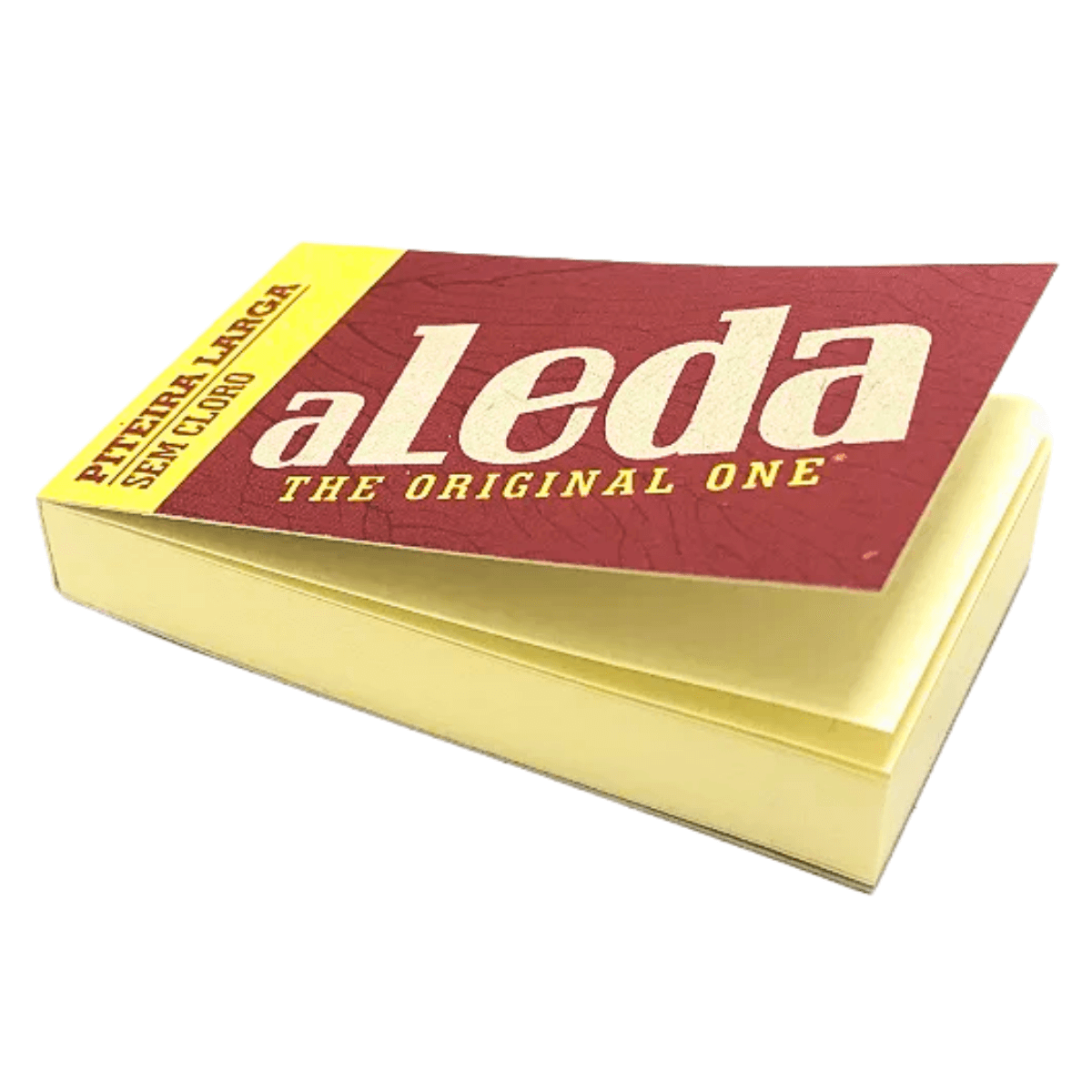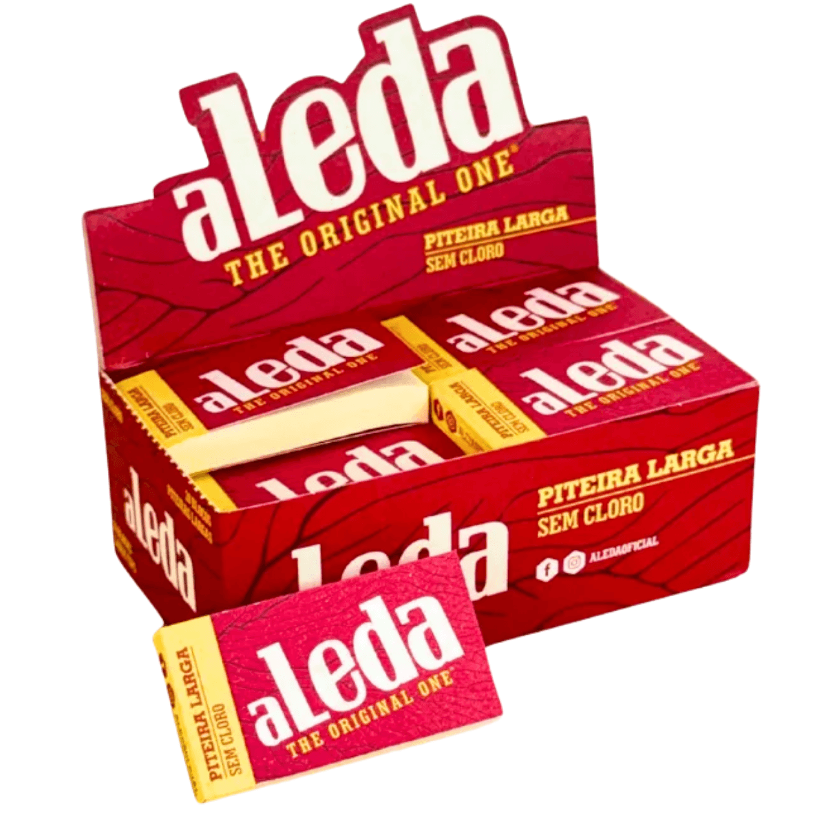A Piteira de Papel aLeda Vermelha Larga é um acessório em papel, fornecido em display com 20 livretos. Cada livreto contém 50 folhas, totalizando 1.000 piteiras por display, em formato largo e na cor vermelha.