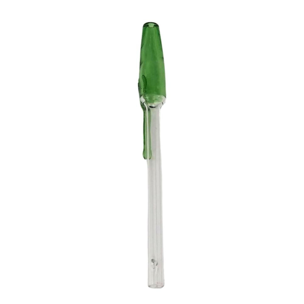 Piteira em vidro da marca ABDZ, modelo BIC, com 100 mm de comprimento e 6 mm de diâmetro interno. Acabamento na cor verde, reutilizável e de fácil higienização.