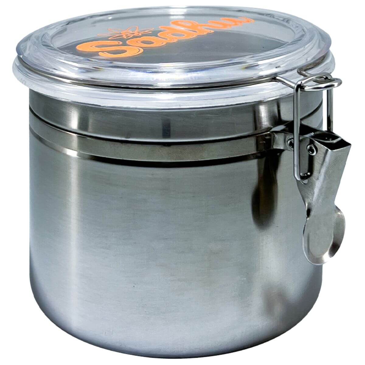 O Pote Hermético Sadhu Aço Inoxidável 236g com vedação em borracha é um recipiente de armazenamento desenvolvido para manter o conteúdo protegido da umidade e de odores externos. Fabricado em aço inoxidável e equipado com tampa plástica transparente com fechamento por trava, reúne robustez e facilidade de visualização do interior, sem necessidade de abrir o pote.