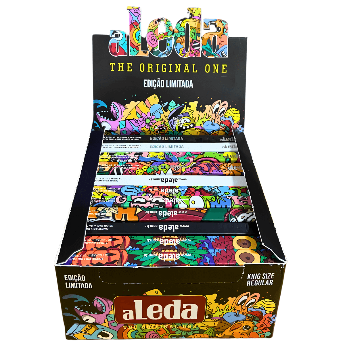 Por ser uma edição limitada dentro da linha King Size Regular da Aleda, o display se diferencia de produtos similares pelo visual exclusivo, pela combinação de folha ultrafina com piteiras no mesmo livreto e pela boa apresentação no expositor. Para quem procura fornecedor de seda Aleda com foco em consistência de fornecimento, o display com 24 livretos se torna uma opção prática e organizada.