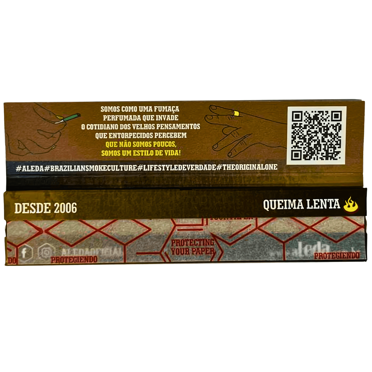 A Seda Aleda Ouro Brown King Size Slim é um papel para enrolar em formato longo e estreito (king size slim), na versão brown (papel marrom), produzida com matéria-prima não branqueada e sem cloro. É uma opção indicada para quem busca um papel mais fino, com queima mais lenta e acabamento uniforme.
