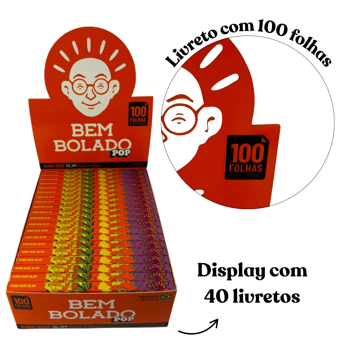Cada livreto da seda Bem Bolado PP King Size Slim geralmente contém 35 folhas de papel branco ultrafino. No display com 40 livretos, isso resulta em um volume adequado para reposição frequente em pontos de venda especializados.