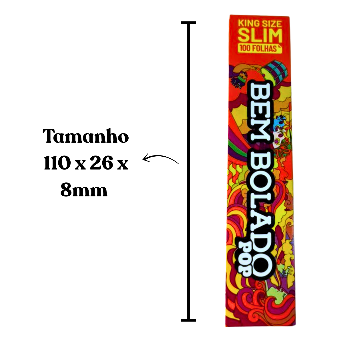 Qual é o tamanho e o padrão do papel da seda Bem Bolado PP King Size Slim?