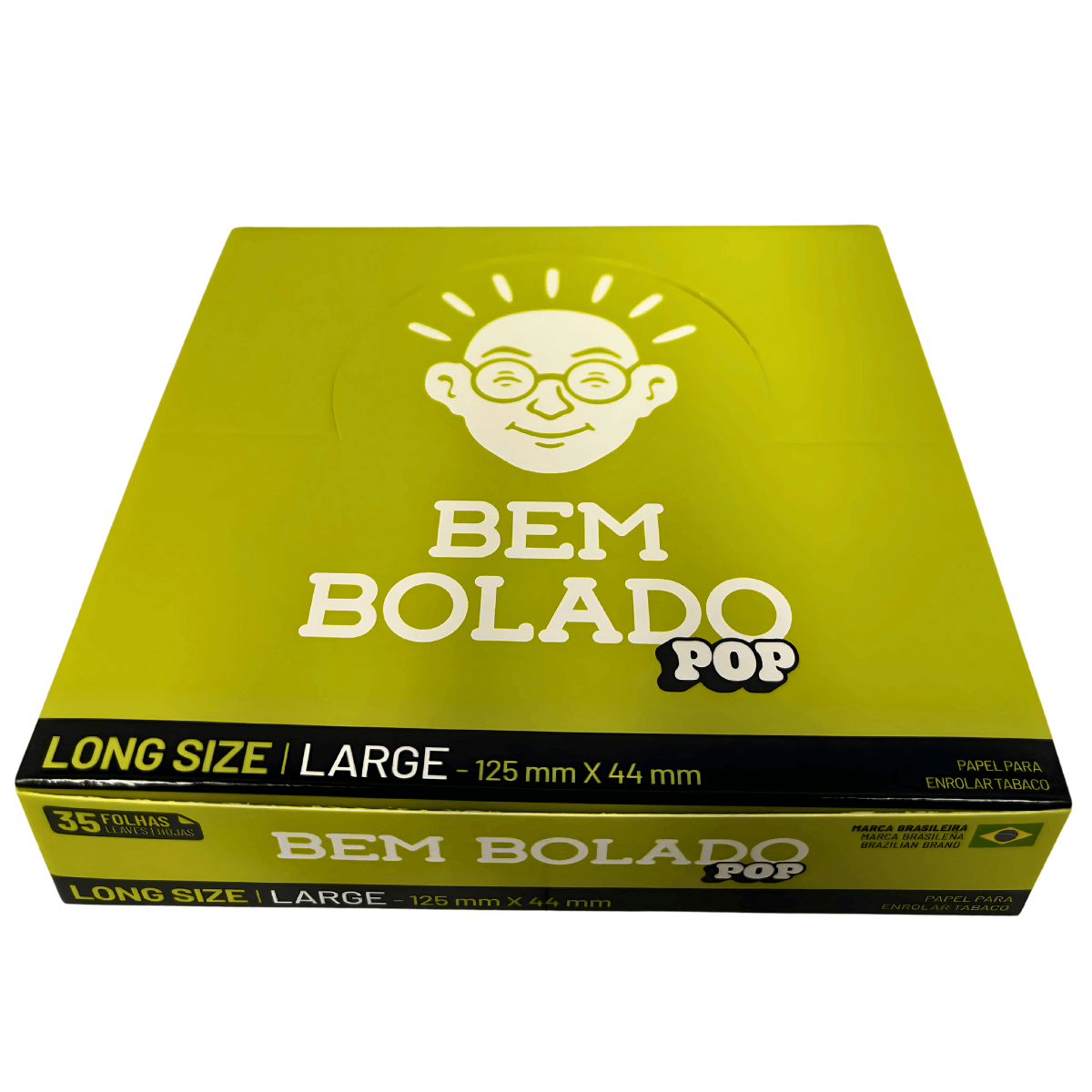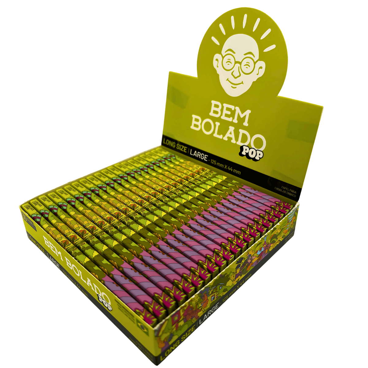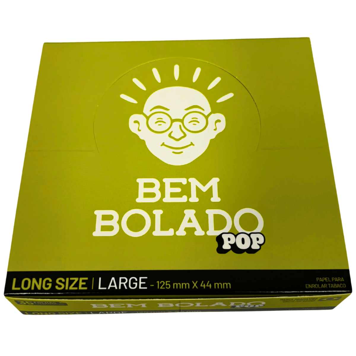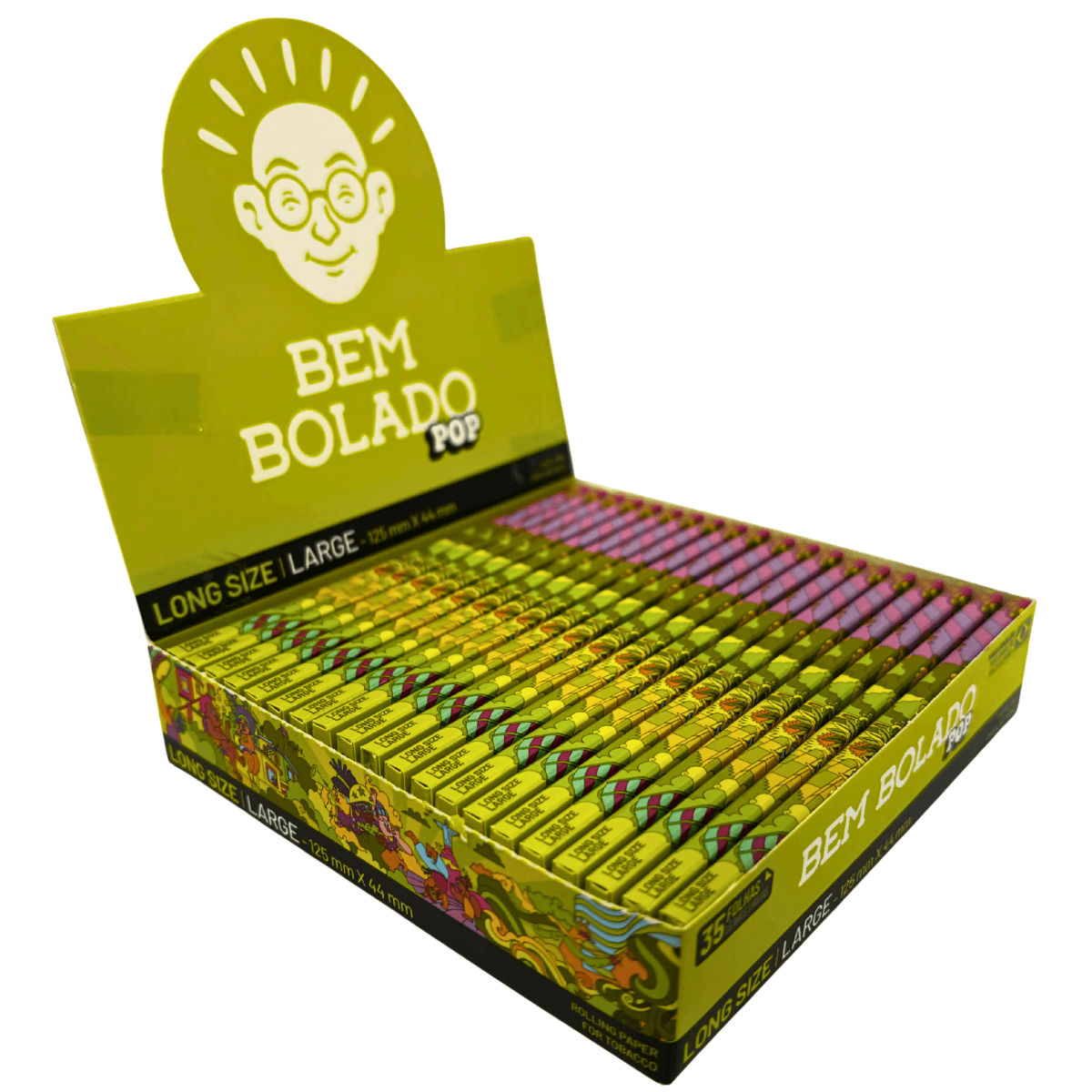 A Seda Bem Bolado PP Long Size Large em display é um conjunto de papéis no formato long size, organizado em caixa com 24 livretos. Cada livreto contém 35 folhas no tamanho 125 x 44 mm, voltado para quem prefere folhas mais longas e com padronização de corte.