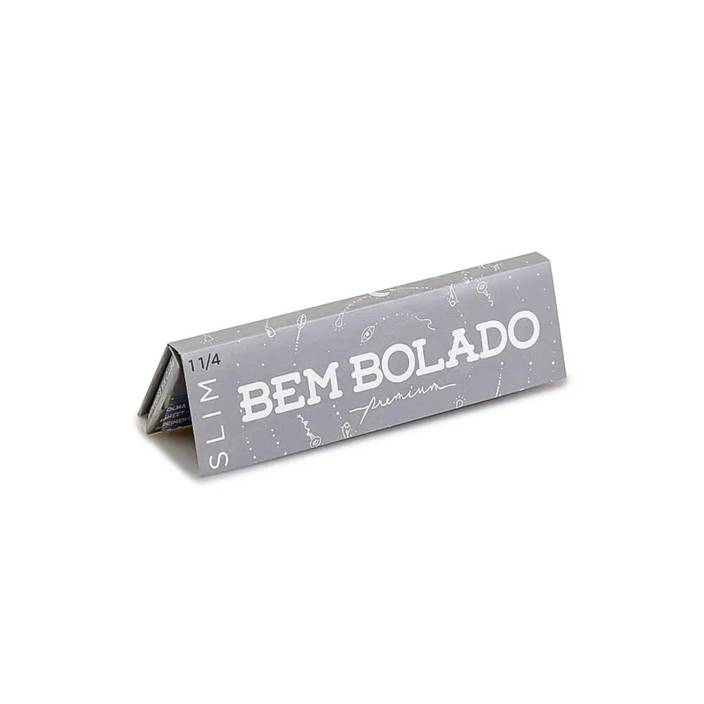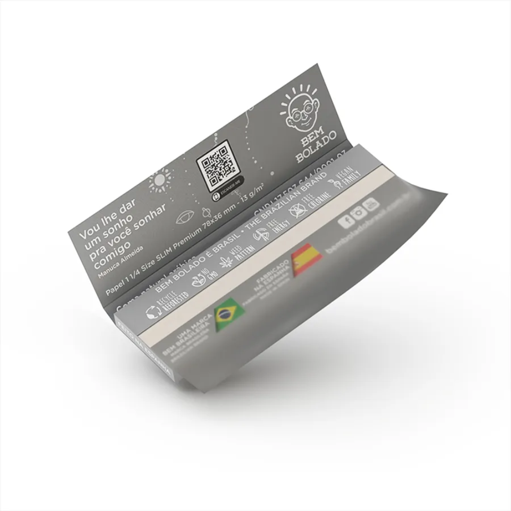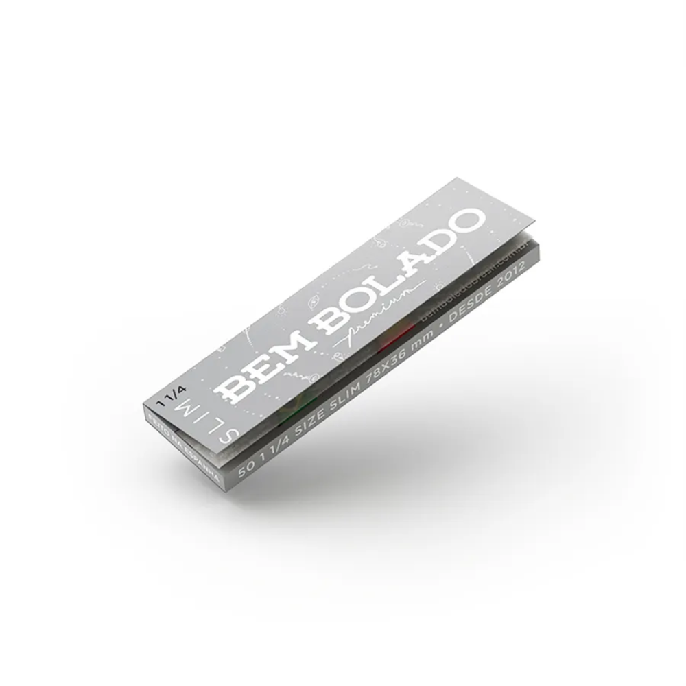 As folhas possuem 78 mm x 36 mm. Essa medida é típica do formato 1 1/4 Slim e facilita a padronização do produto para revenda de seda Bem Bolado em lojas especializadas.