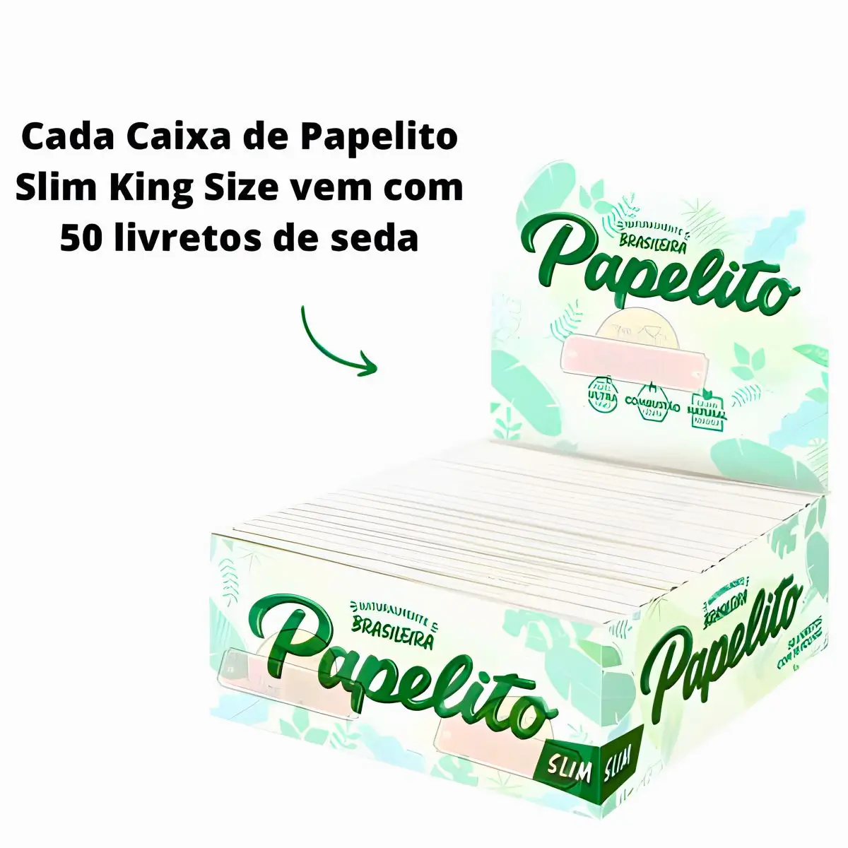 1 (uma) Seda Papelito Slim King Size Display com 50 (cinquenta) livretos, cada um contendo 36 (trinta e seis) folhas de papel ultrafino.