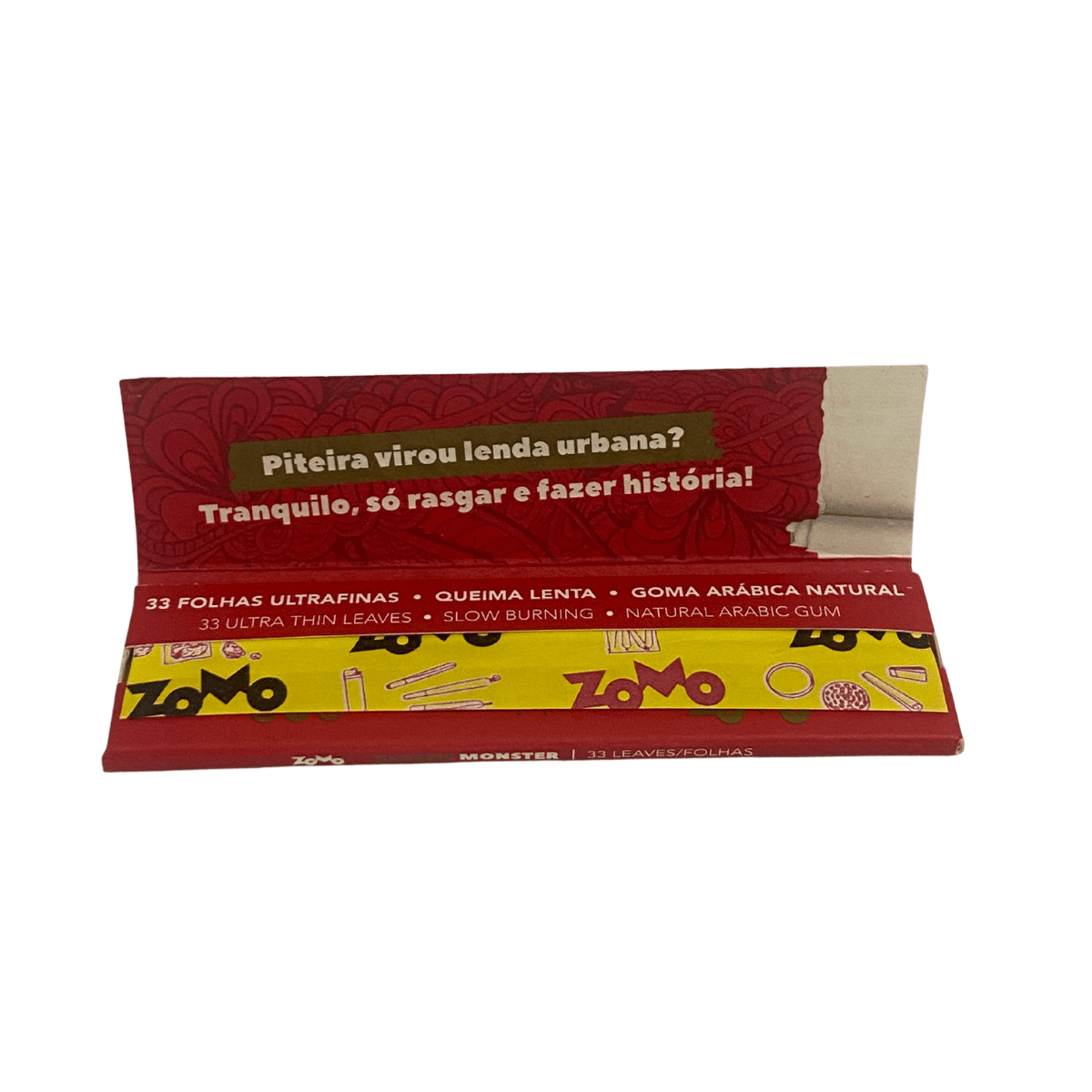 Trata-se de um papel de seda no formato King Size extra largo, característico da linha Monster, oferecendo área maior de papel em comparação a modelos tradicionais, mantendo a mesma referência de marca Zomo.