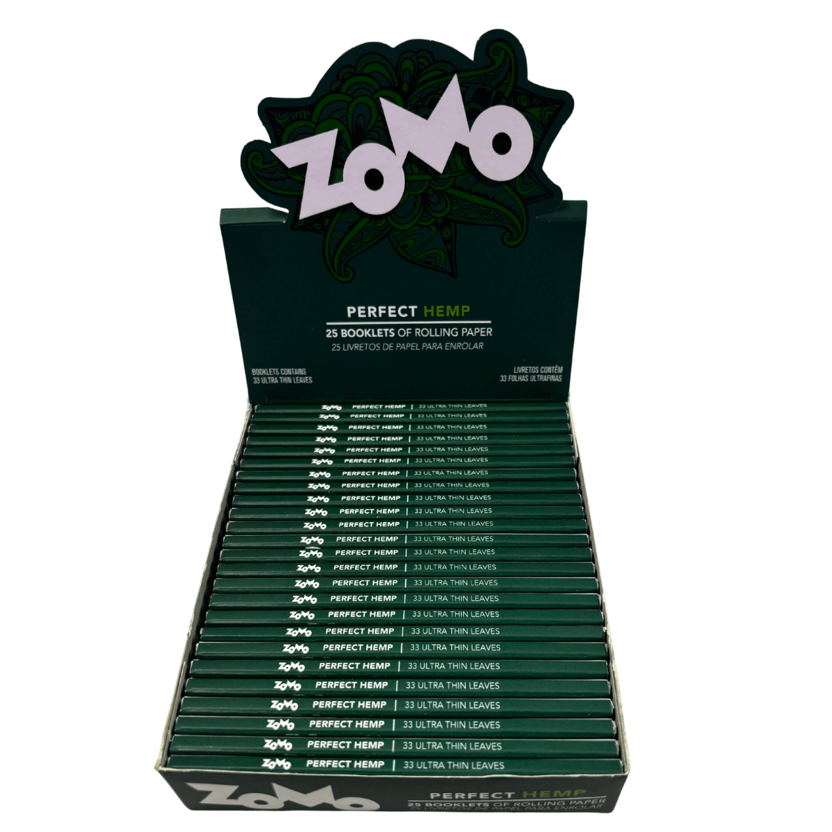 A Seda Zomo Perfect Hemp é um papel para enrolar produzido com fibras de cânhamo, desenvolvido para quem busca um material de composição mais natural e manuseio consistente. Este anúncio corresponde ao display com 25 livretos, adequado para organização em ponto de venda e reposição de estoque.