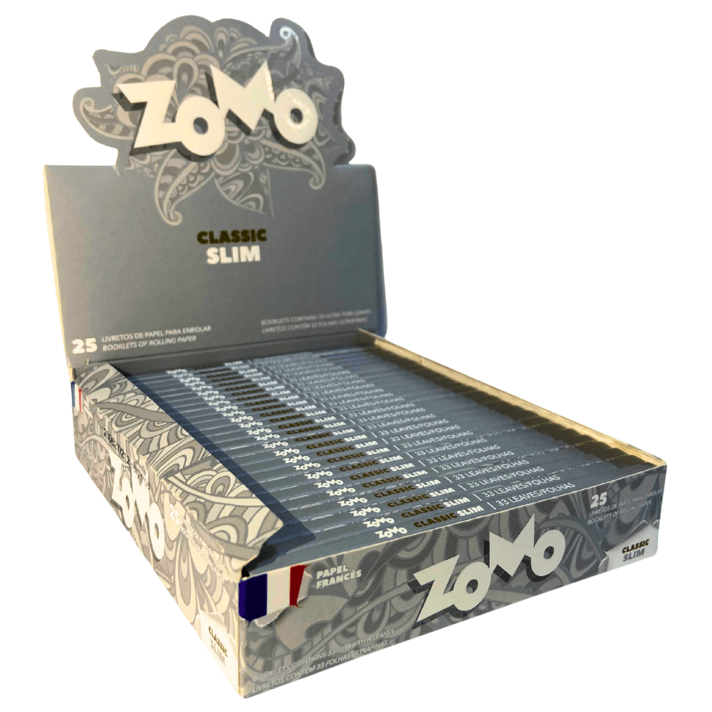 O acabamento prata e o padrão visual característico da linha Zomo Classic Slim facilitam a identificação no ponto de venda e na guarda em estoques organizados. Em comparação com papéis comuns, o modelo slim king size se destaca pela combinação de espessura reduzida, formato alongado e apresentação em display, características valorizadas por quem prioriza praticidade, regularidade e padronização.