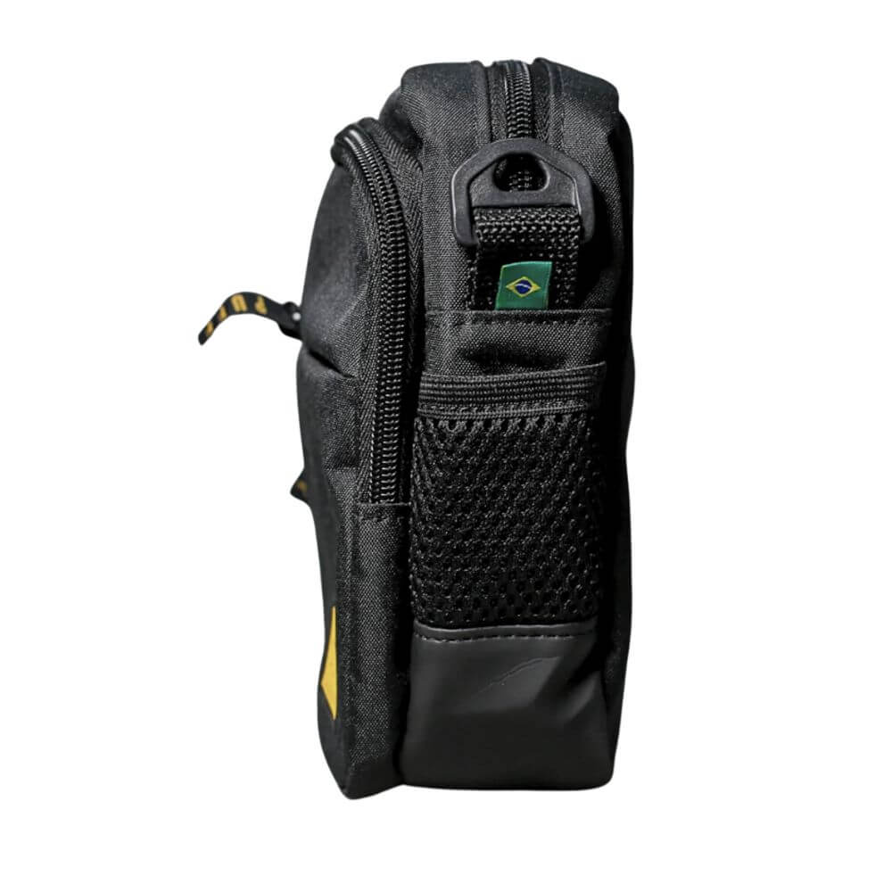 O modelo conta com 4 compartimentos internos e bolsos laterais, permitindo separar itens como celular, carteira, documentos e acessórios menores. O fechamento em velcro ajuda a manter o conteúdo seguro, enquanto os bolsos externos facilitam o acesso rápido a objetos de uso frequente.