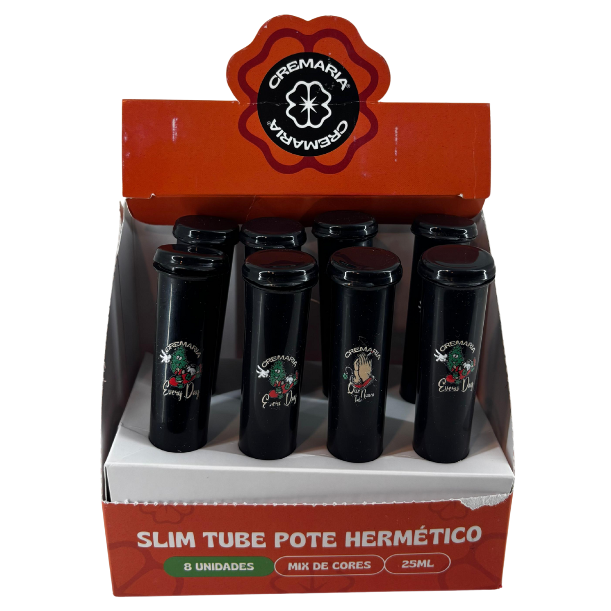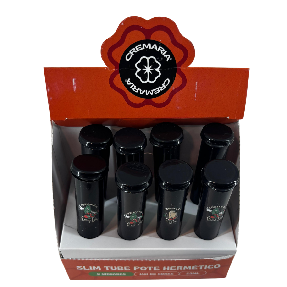 Slim Tube Pote Cremaria Hermético Preto – Display C/8 Unidades