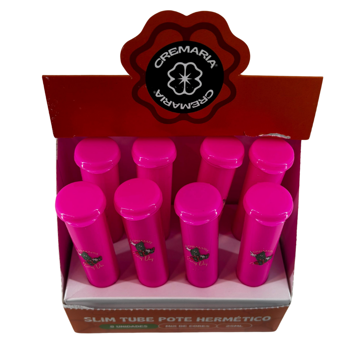 Slim Tube Pote Cremaria Hermético Rosa Neon – Display C/8 Unidades